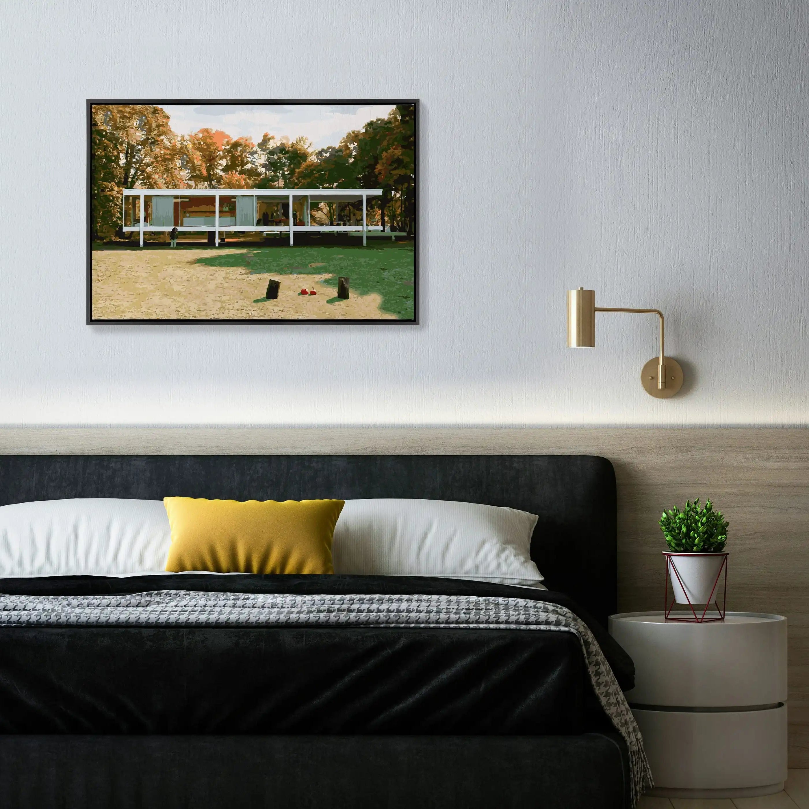 A masterpiece of minimalism, the Farnsworth House by Mies van der Rohe is the ultimate expression of modernist purity and elegance. With its sleek glass walls and floating steel frame, this architectural icon blurs the boundaries between indoors and nature, creating a sense of harmony and lightness. This paint-by-numbers kit captures the house’s crisp geometry and serene surroundings, offering a refined yet rewarding challenge for those who appreciate the beauty of simplicity. Perfect for modern architecture lovers, this kit lets you create a timeless piece of art and decor—a tribute to one of the most celebrated works of 20th-century design.